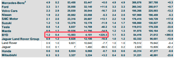 这也意味着,7月比亚迪在上述欧洲商场上的新车注册量,比特斯拉多出了52.8%。7月,比亚迪在欧洲商场的份额为1.2%,特斯拉则仅为0.8%。